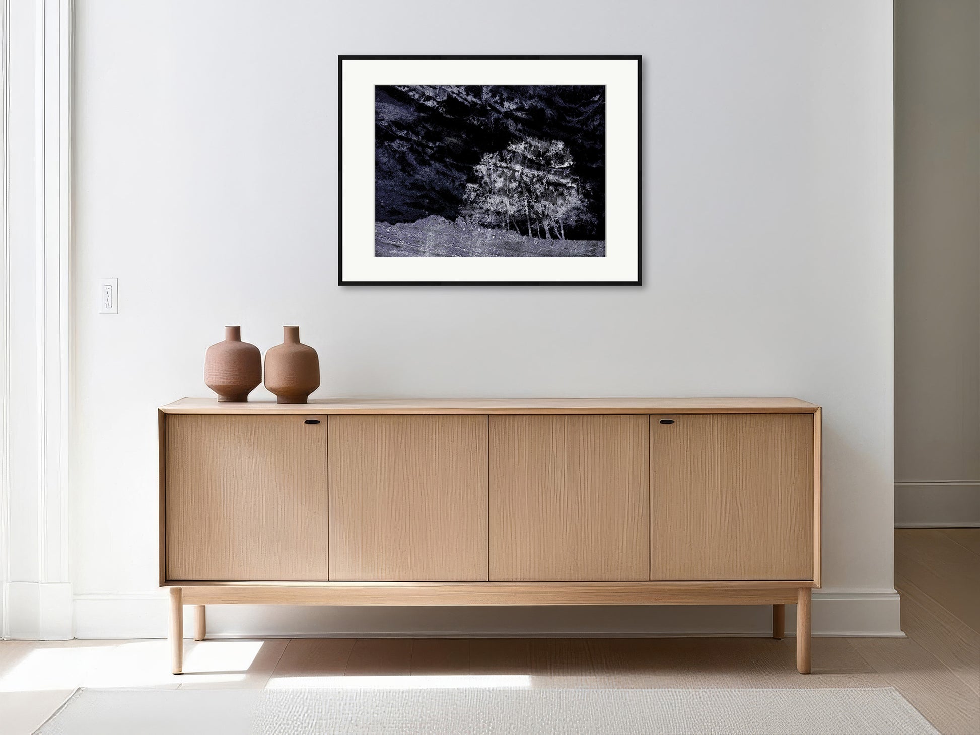 Our framed prints are available in white, black, or oak finishes. Each wooden frame is crafted in a timeless style and includes a soft white border around the image. Printed on Hahnemühle Bamboo — a museum-grade fine art paper — each piece is prepared to preserve both detail and tone.